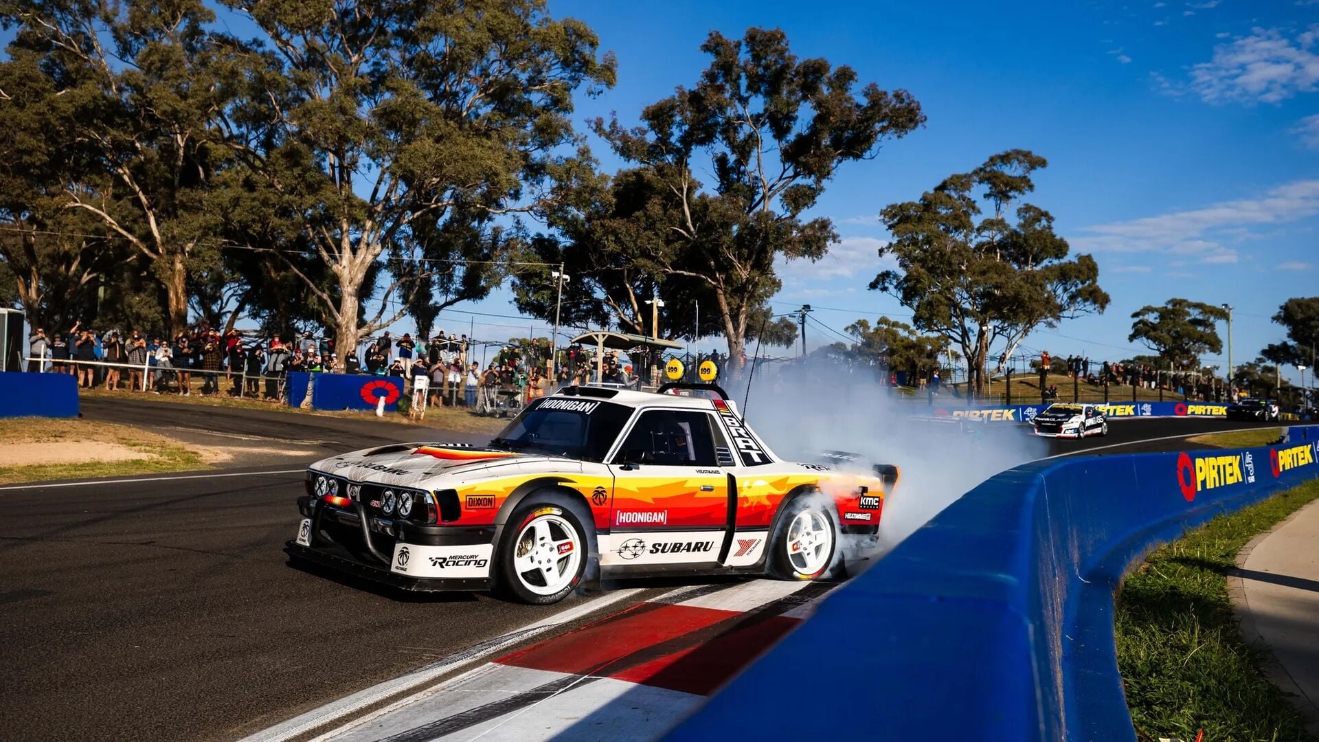 Also tat das Team, was Hoonigan eben tut: Sie übertrieben. Dazu gehört ein Drag Race mit V8-Supercars – während eines Rennens. Sowie Zufallsbegegnungen mit Legenden aus BMX, WRC, Dakar – und natürlich einem Känguru.